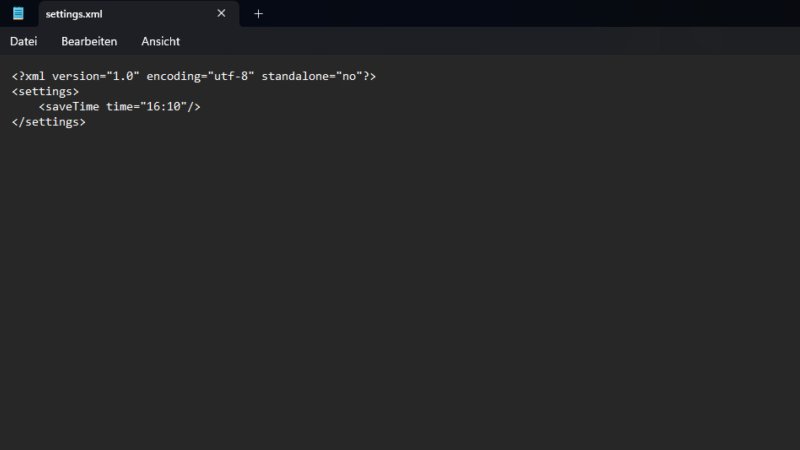Tworzony jest plik o nazwie settings.xml, w którym można zdefiniować dokładne godziny rozpoczęcia procesu zapisywania.